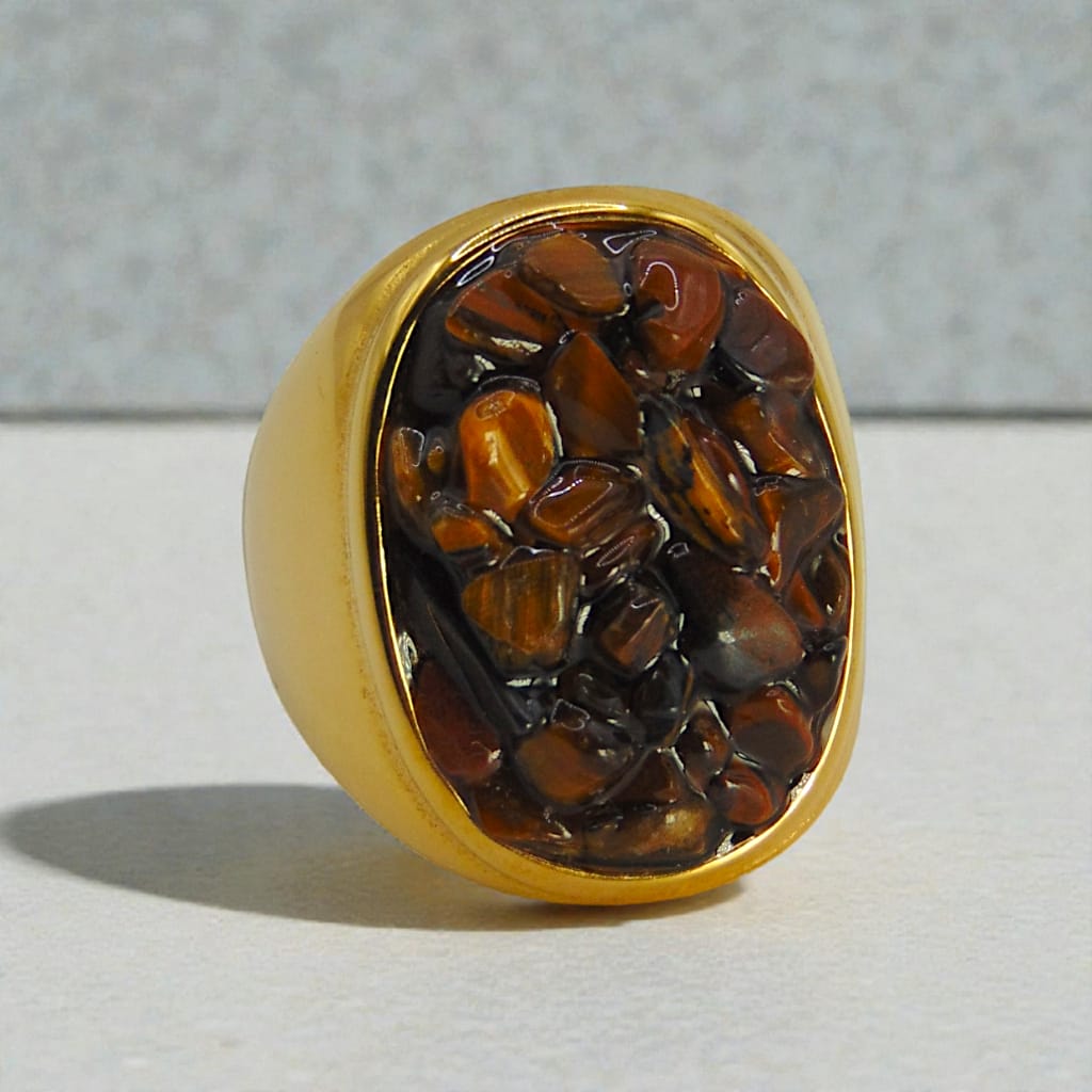 anillo piedras café acero inoxidable