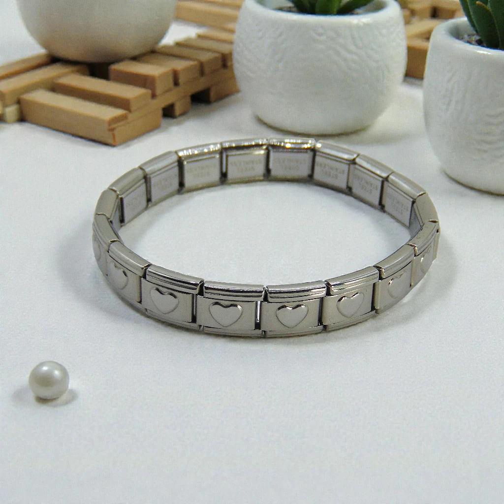 pulsera italiana plateada con corazones plateados