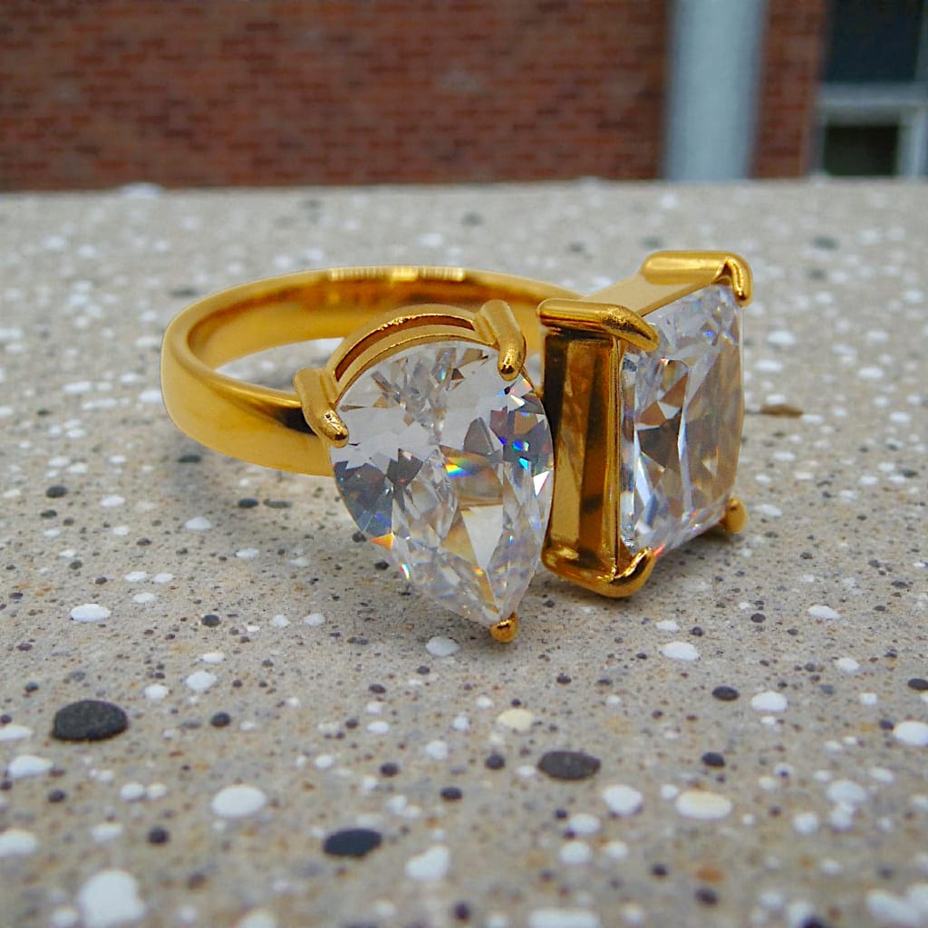 anillo acero inoxidable doble brillo dorado